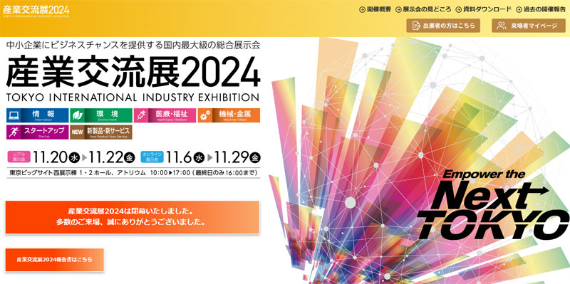 産業交流展は、首都圏の中小企業が優れた技術や製品を一堂に展示し、販路拡大や企業間連携の促進を目的とした総合展示会です。